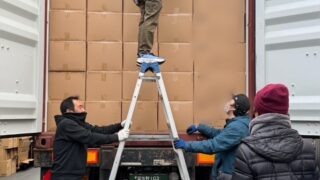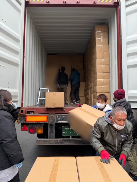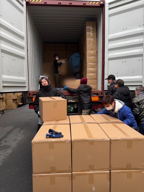 大手珈琲メーカー様の来年の商品のバッグが入りました。コンテナからの荷降ろし作業(デバンニング)の様子です。利用者さん7名と職員4名でそれぞれ分担して行いました。いつもこの作業をしているグループメンバーは同じ為、自分の動きが分かっていたり、お互いに声を掛け合ったり、高い位置は協力し合いながら取り組みました。