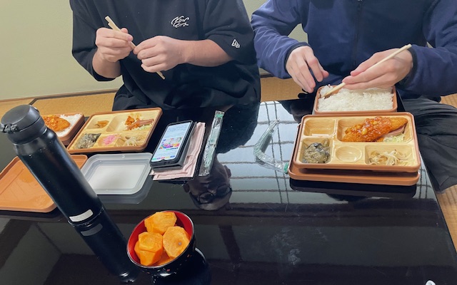 この写真は、お昼にお弁当を取っている方たちです。おかず+ご飯(小盛・中盛・大盛の3サイズあり)のセットでの提供です。新しくご利用を考えている方、お昼ご飯を持ってくる心配なく通えます!見学・実習随時受付中です。ご興味のある方、ぜひお問い合わせ下さい(^^)